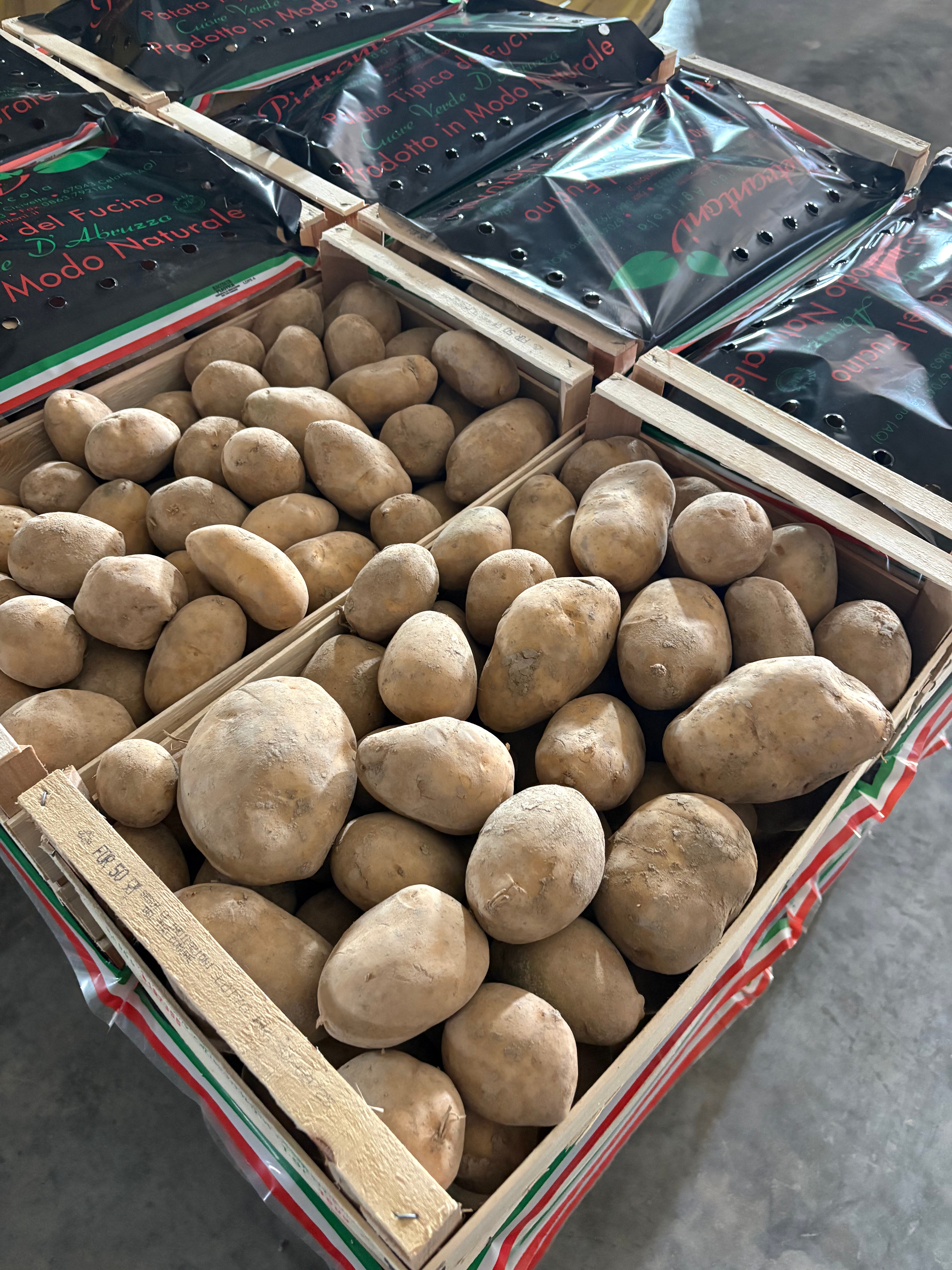 La raccolta delle patate avviene in base al grado di maturazione e alle condizioni climatiche ottimali, al fine di garantire la massima qualità del prodotto. Dopo la raccolta, le patate vengono accuratamente selezionate e successivamente confezionate manualmente in casse di legno, nel pieno rispetto della tradizione e degli standard di lavorazione. Il periodo di lavorazione si estende solitamente da agosto a marzo.