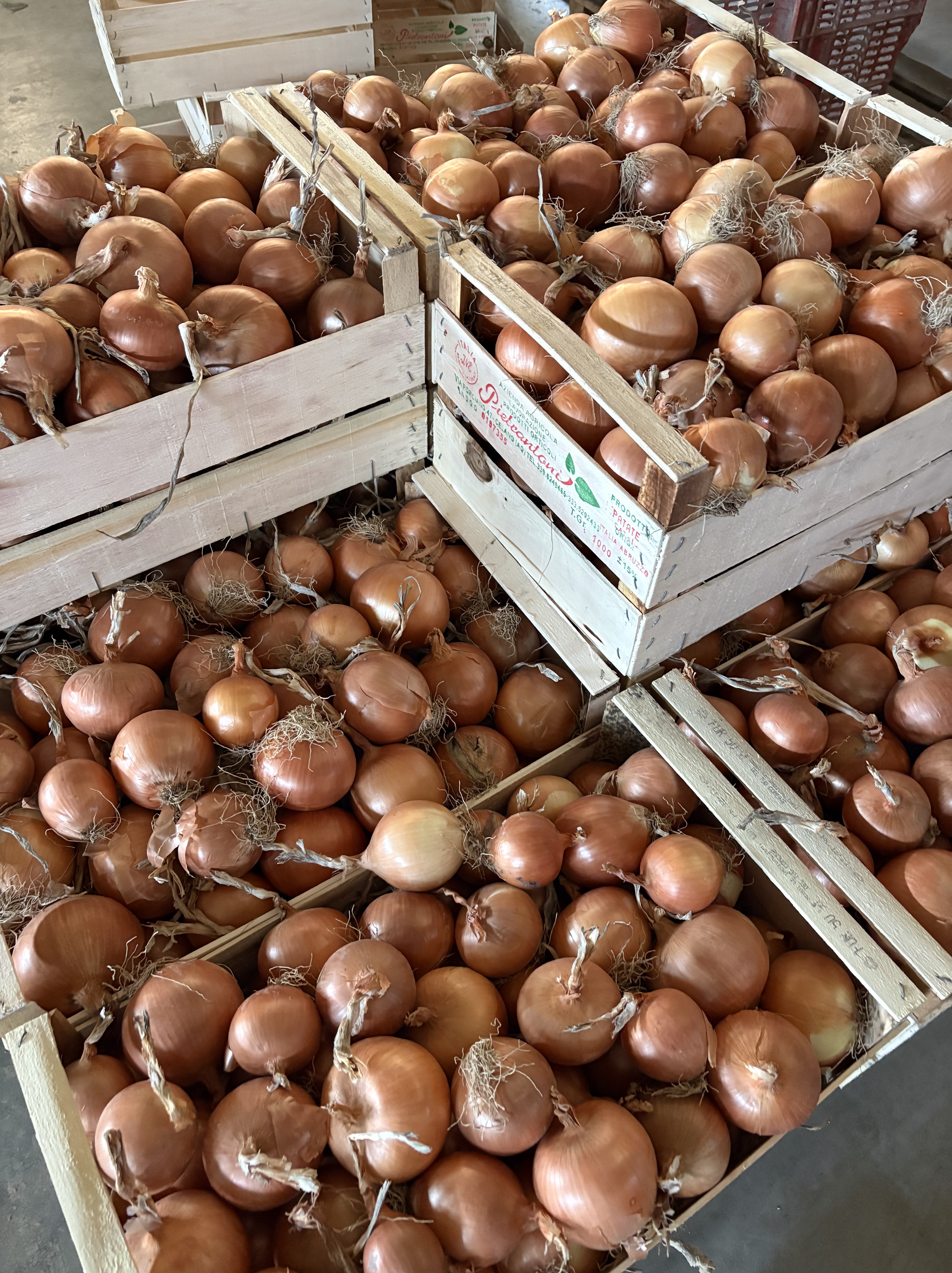 La raccolta delle cipolle avviene in base al grado di maturazione e alle condizioni climatiche ottimali, per garantire un prodotto sano e di qualità. Dopo la raccolta, le cipolle vengono attentamente selezionate e confezionate manualmente in casse di legno, secondo metodi tradizionali e standard di lavorazione accurati.